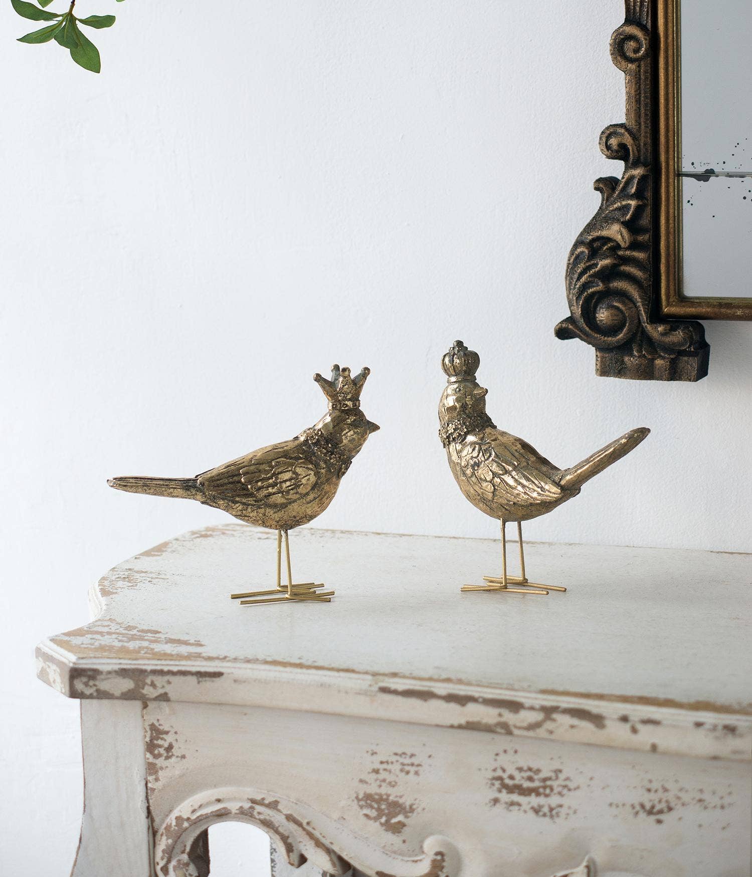 Regal and glamorous, this charming pair of birds features a glistening gold finish and stately crowns for a whimsical yet elegant look. Add this beautiful couple to an office shelf, living room mantle, or entryway table for a playful touch without sacrificing chic style. The sophisticated gold finish complements any color scheme with its brilliant shine and warm tones.