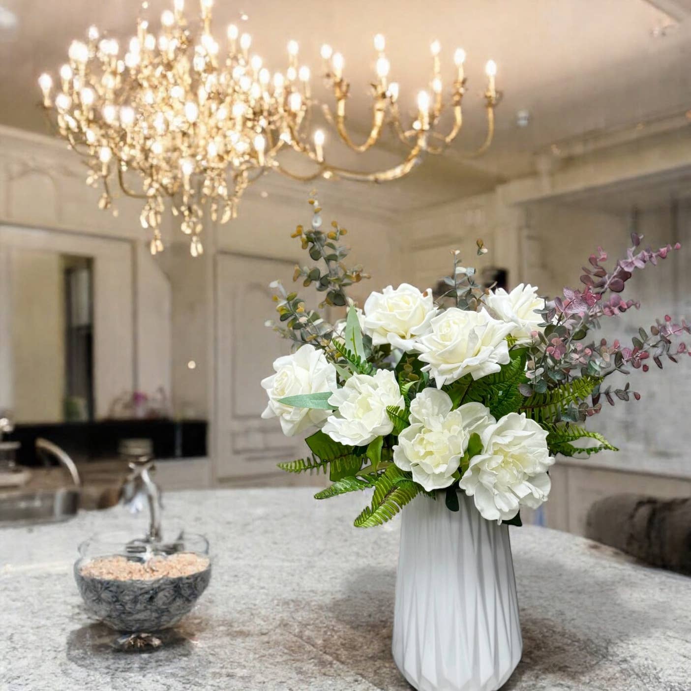 Enhance the sophistication of your living space with this exquisite, realistic peony. Its vibrant colors and fully open, large blooms exude natural beauty. The flexible stems allow for easy shaping to accommodate your creative design concepts. You can effortlessly showcase it in a vase or create stunning arrangements by pairing it with eucalyptus.
