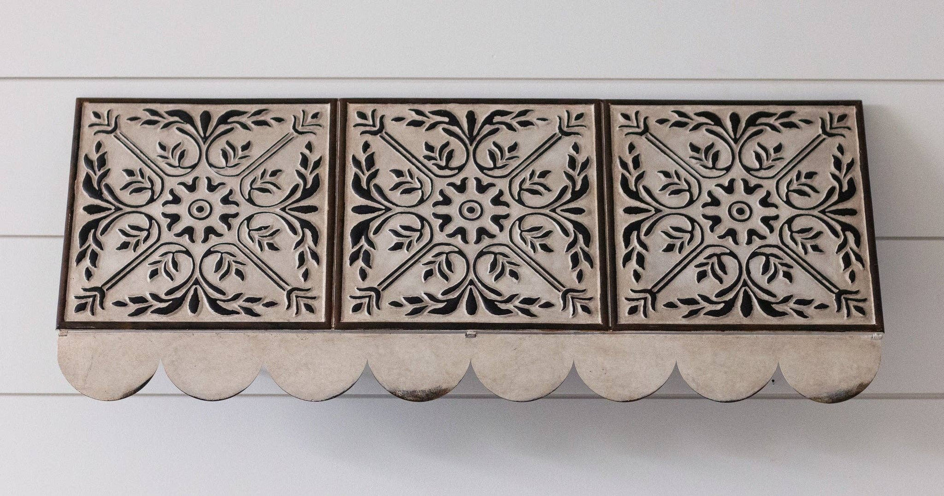 Discover the charm of vintage-inspired home decor with Audrey's Interior Window Metal Deco Awning. Expertly crafted from durable iron, this wall accent measures 14.75" in height, 35.5" in length, and 6" in depth. This unique piece brings a touch of rustic elegance to your living space, capturing the essence of Audrey's passion for handcrafted designs. Perfect for adding an artistic flair to your home, it's an exquisite addition to any wall decor collection. Enjoy the timeless appeal of Audrey's creations, where quality meets creativity.