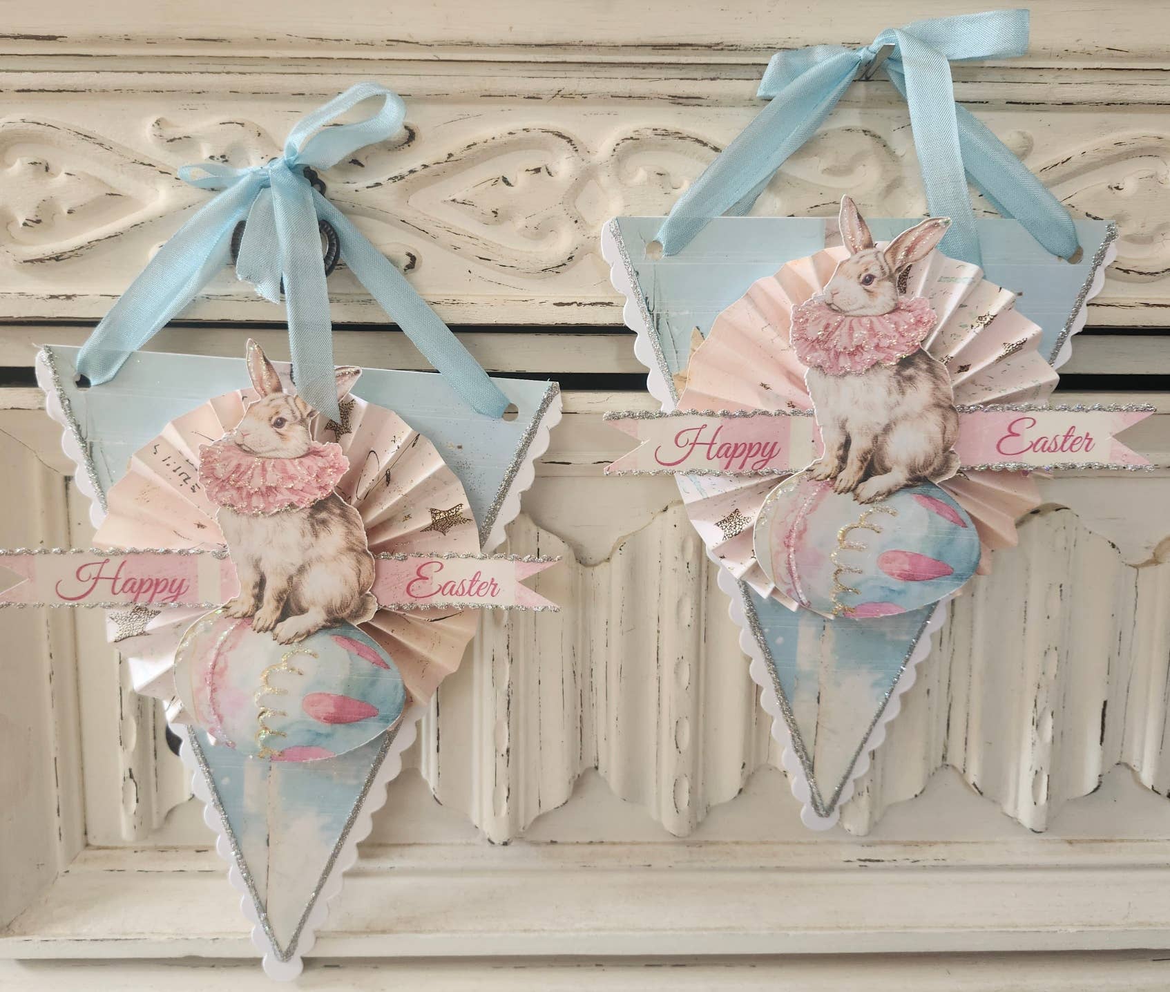 This is an adorable Easter Bunny n Egg paper rosette hanging decoration. Perfect to add some lovely spring/Easter charm to your decorating. It measures approximately 11 1/2 inches long from the ribbon and it's 8 inches wide. Made with heavy cardstock it's four layers thick so it very durable.