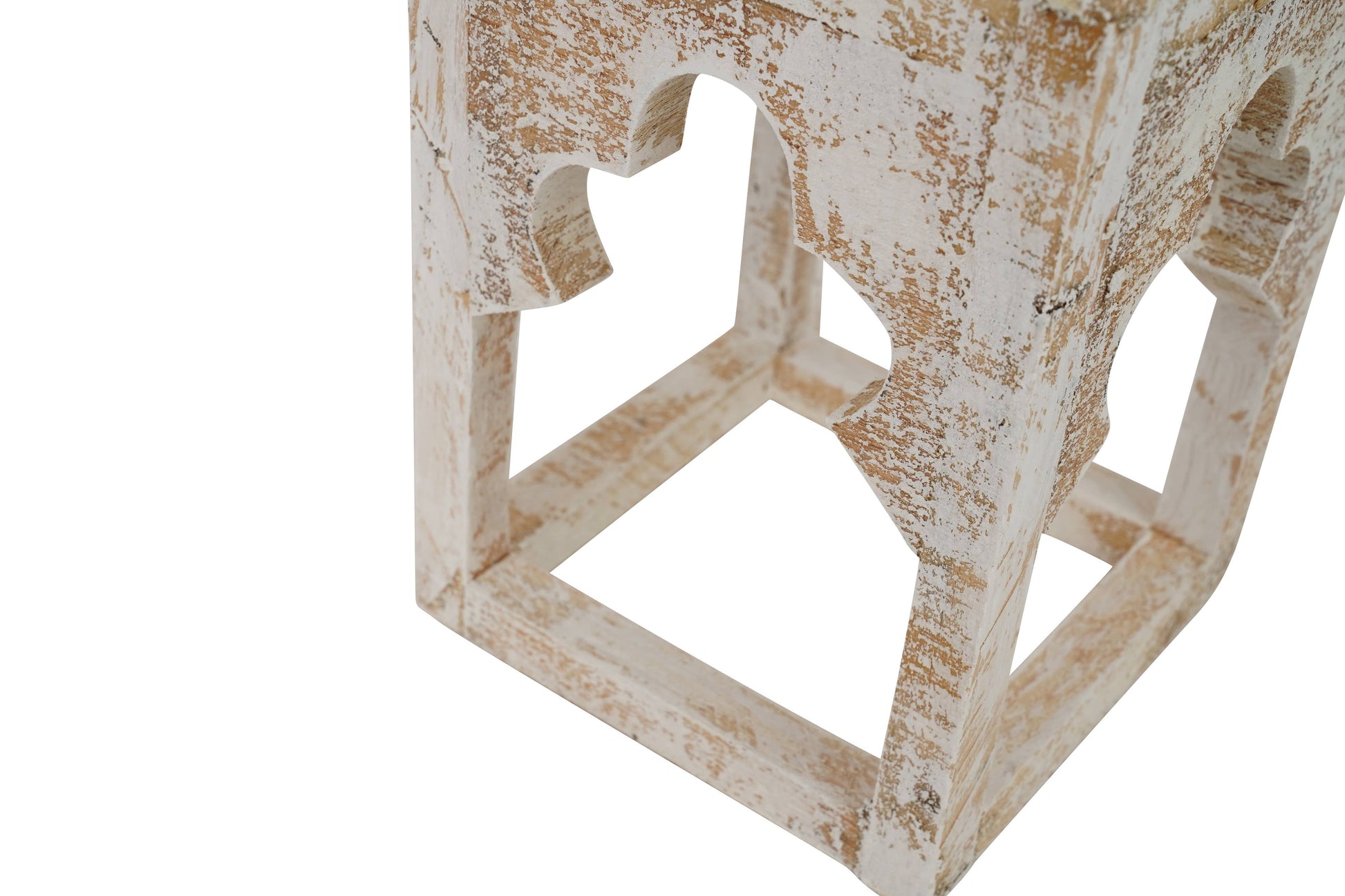 Our newest design in our very popular lantern design group. We call this the Kota Lantern set of 3 in this distressed, antiqued white washed tone