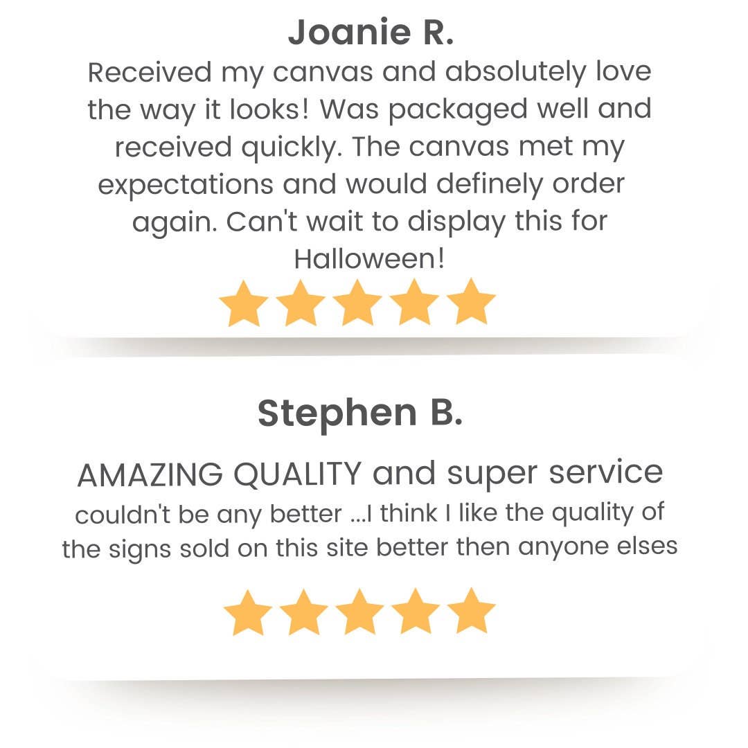 Design and faux frame are printed on smooth canvas (not real wood or metal).
