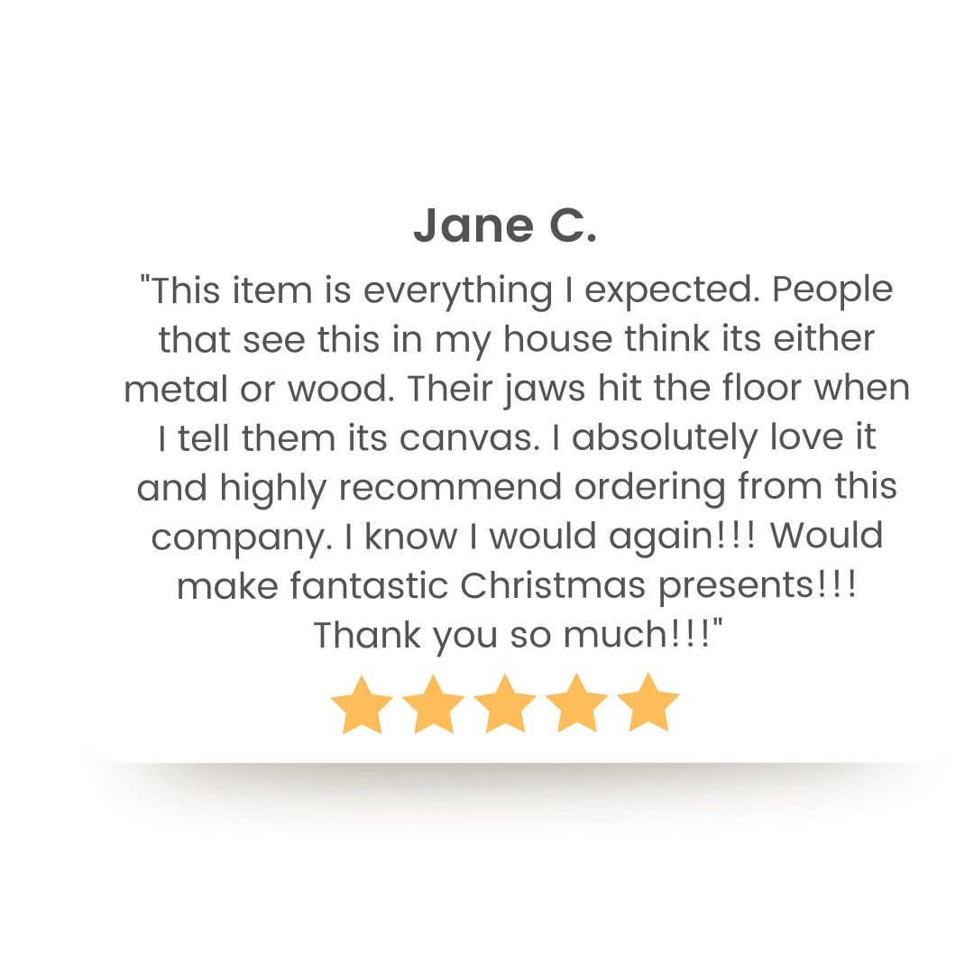 Crafted on artist-grade canvas, each piece is stretched over a solid wood frame & arrives ready to hang. It gives the warmth & look of a wooden sign, without the weight. Ideal for in-store display. The printed faux frame and weathered finish offer rustic appeal