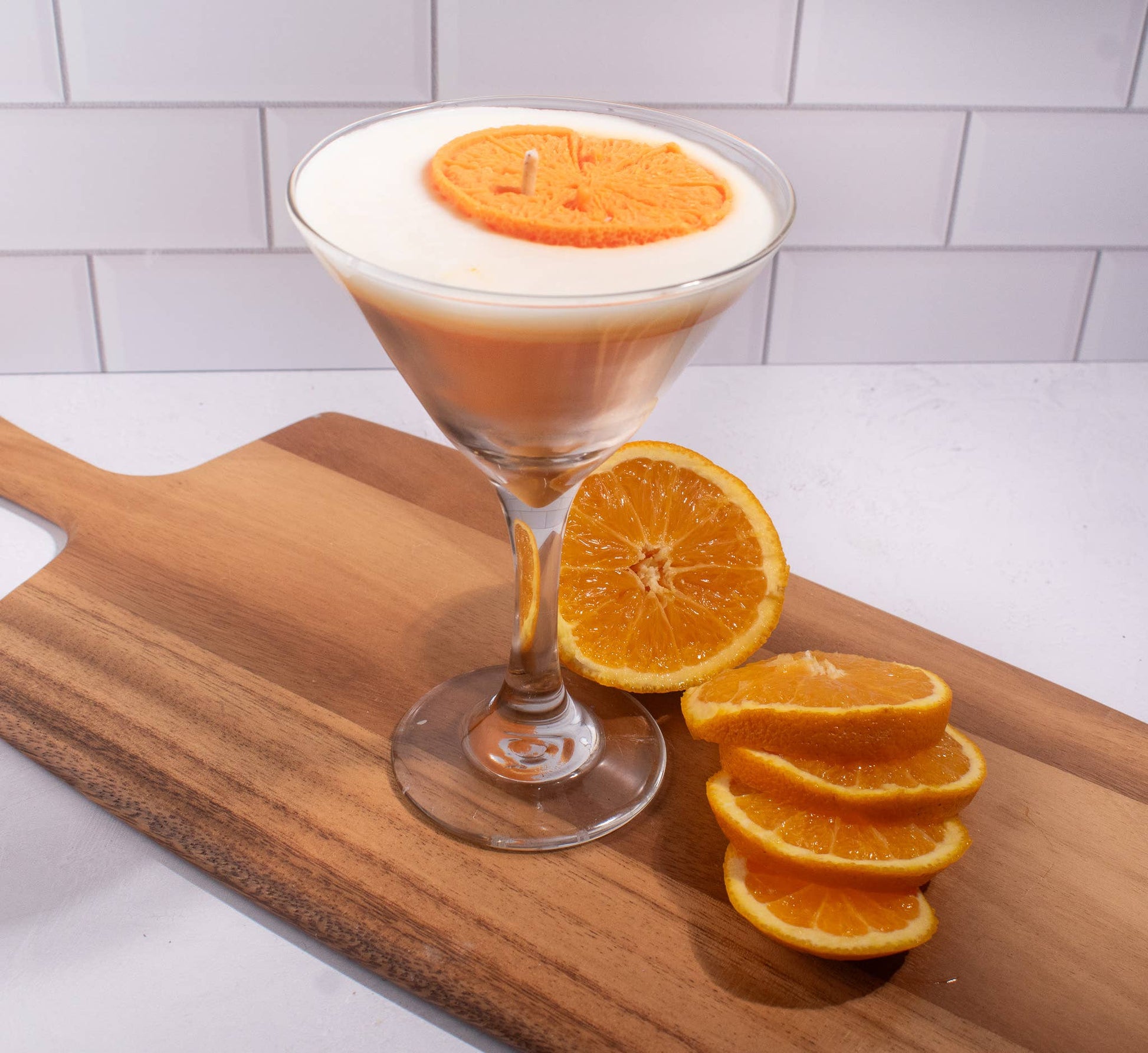 Bring a splash of summer into your space with our Creamsicle Cocktail Candle—a playful nod to the treat you loved as a kid, with a grown-up twist. Hand-poured into a real martini glass and topped with a dried orange slice, this soy-based candle looks and smells like a real creamsicle cocktail—bright citrusy orange with creamy vanilla.
