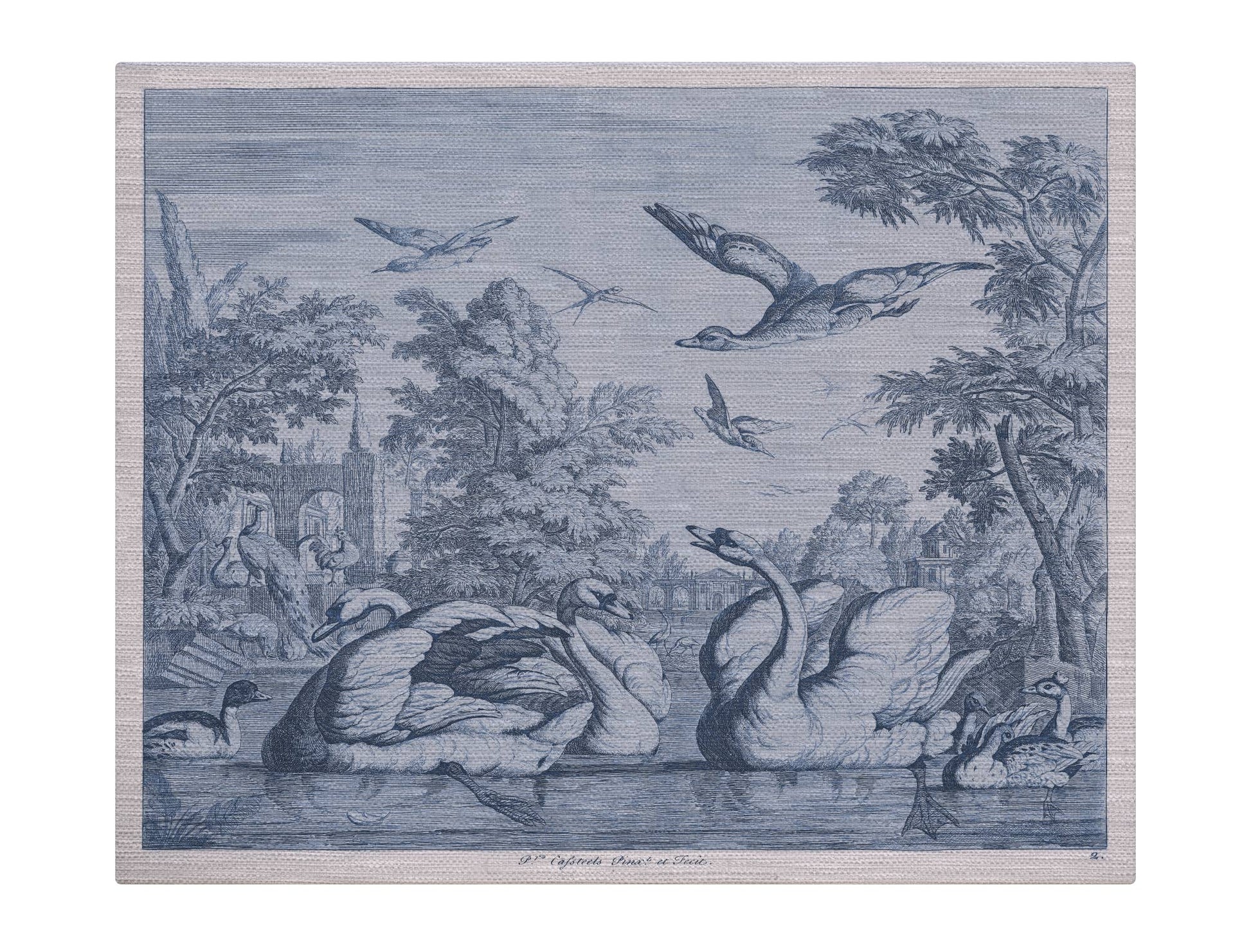 SPLASHWORKS - Swans in Toile Blue Fabric Gallery Wrapped Wall Art