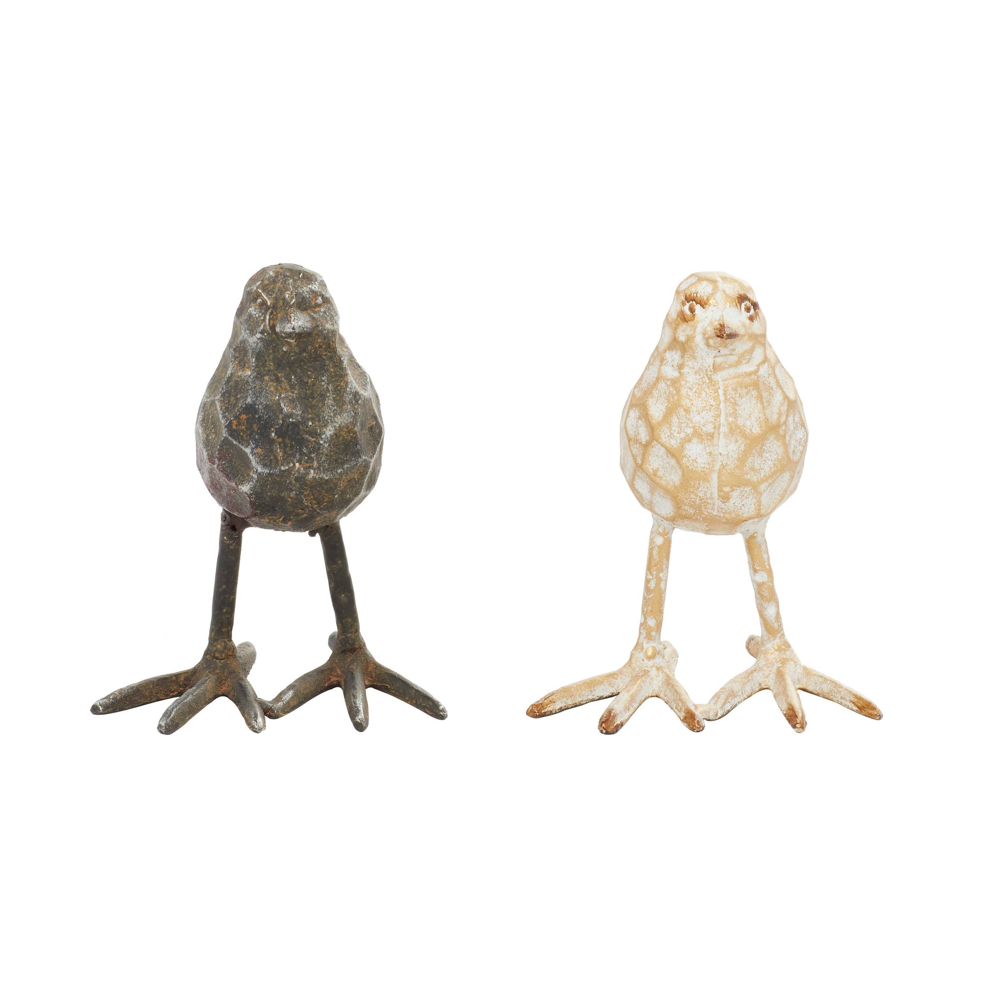 Adorn your surface space by incorporating sculpture into your decor to add depth and texture in your home. An artistic display to showcase your personality and enhance the look of any open table top space. Give your bookshelf, office, night table or coffee table a little stylish touch with this eye catching sculpture. This item ships in 1 carton. Please note that this item is for decorative use only. Metal sculpture makes a great gift for any occasion. Suitable for indoor use only. This item ships fully assembled in one piece. This gold colored metal statue comes as a set of 2. Farmhouse style.